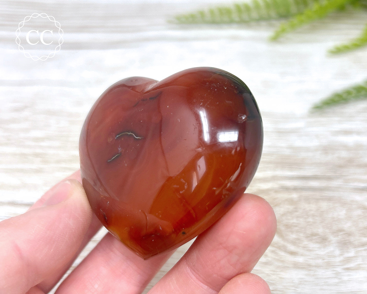 Beautiful Carnelian polished heart from Madagascar. You will receive the exact Carnelian crystal shown in the photos.