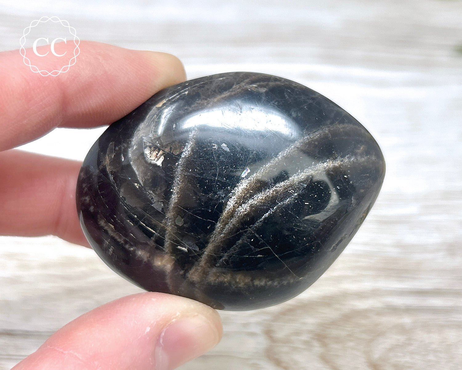 Black Moonstone is a lesser known variety of the more popular peach/pink Moonstone, with the same beautiful chatoyant/shimmer effect when the crystal is moved about.