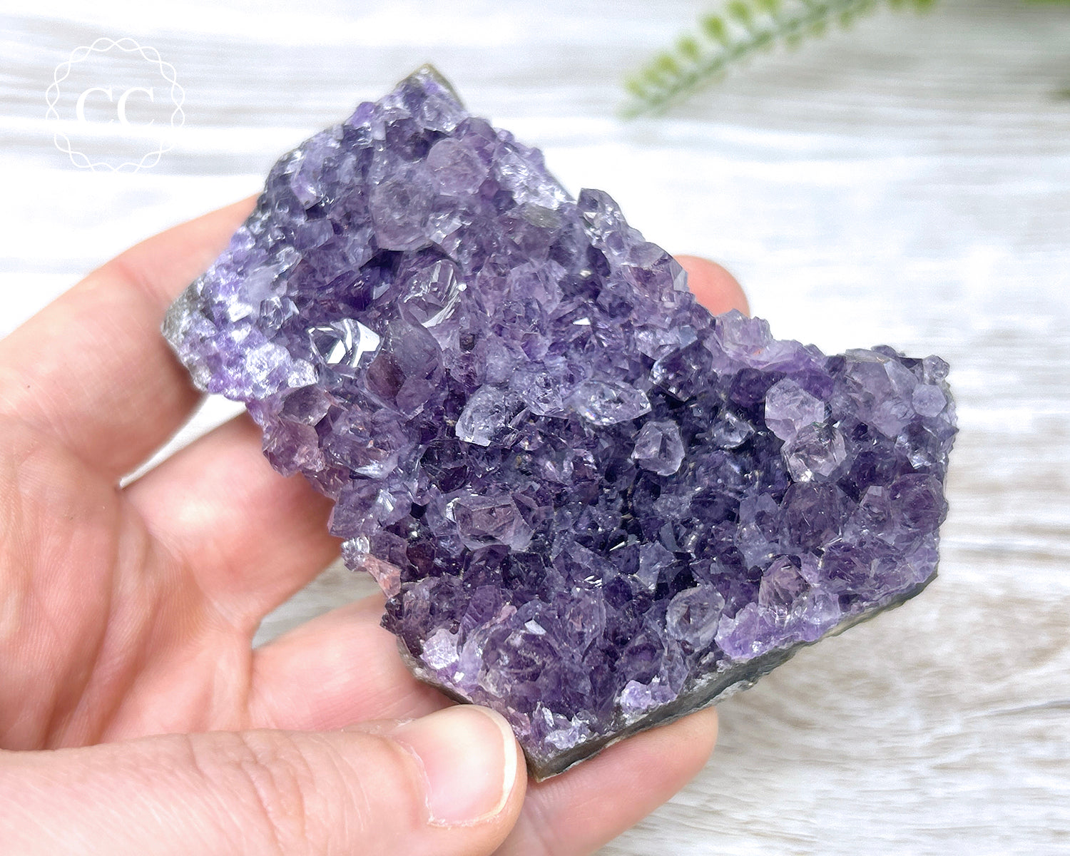 Lovely sparkly Amethyst cluster from Brazil. You will receive the exact crystal pictured - please note Amethyst looks very different under different lighting conditions, we try as much as possible to capture accurate colour representation in our photos.