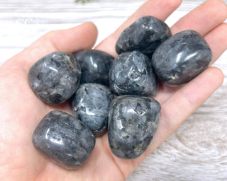 New larger size chunky Larvikite tumbled crystals, each one has been hand selected and has some silvery flash. You will receive one tumble, each one is approx 25 - 32mm.