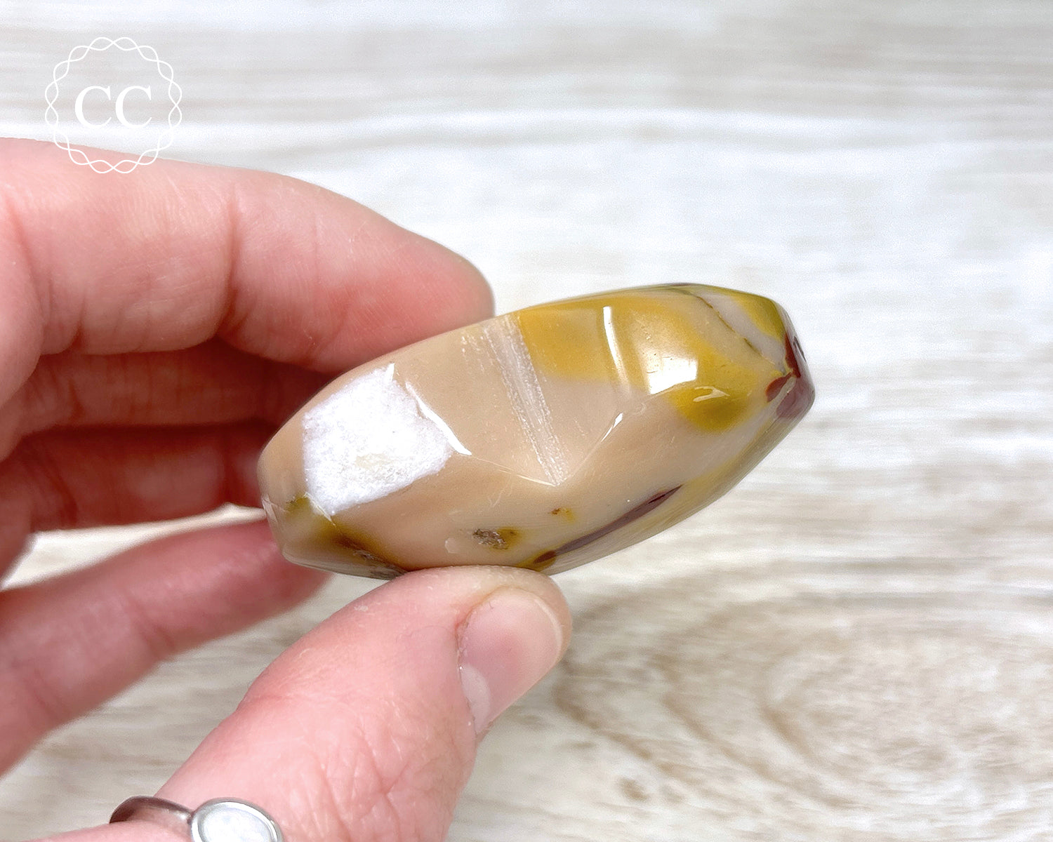 Mookaite is a rare crystal that can only be found in Western Australia. It has wonderful colours and patterns, ranging from reds and yellows to creams, pinks and purples. Its name is Aboriginal, and refers to 'running water', after Mooka Creek where it was found. Its proper name is somewhat less catchy - Airalia radiolarite; as it is not a true Jasper, but rather a silicified porcellanite.