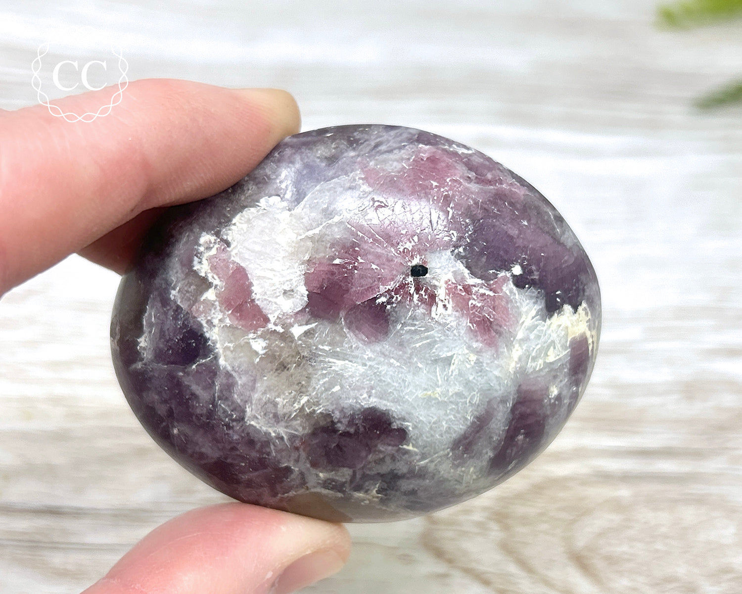 Lovely chunky Lepidolite palmstone from Madagascar. You will receive the exact Lepidolite crystal pictured.