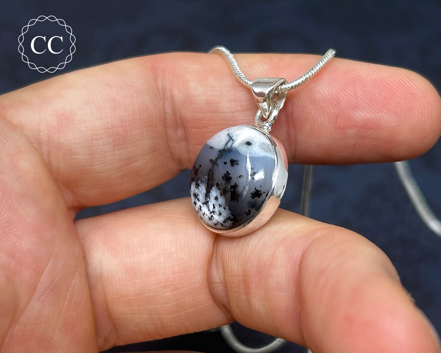 This Merlinite Pendant is set in 925 Sterling Silver with lovely patterns. Comes with an 18 inch snake chain and a CC gift box with a polishing cloth. Dimensions are the size of the pendant, and do not include the bail.