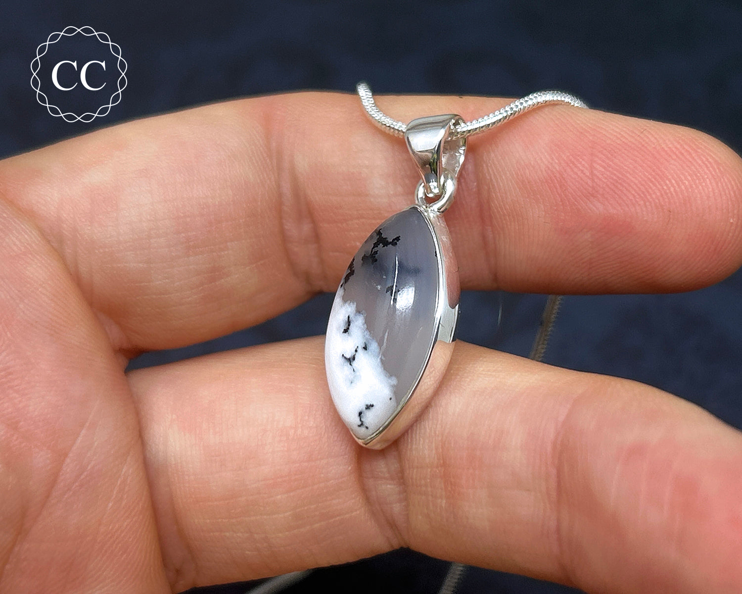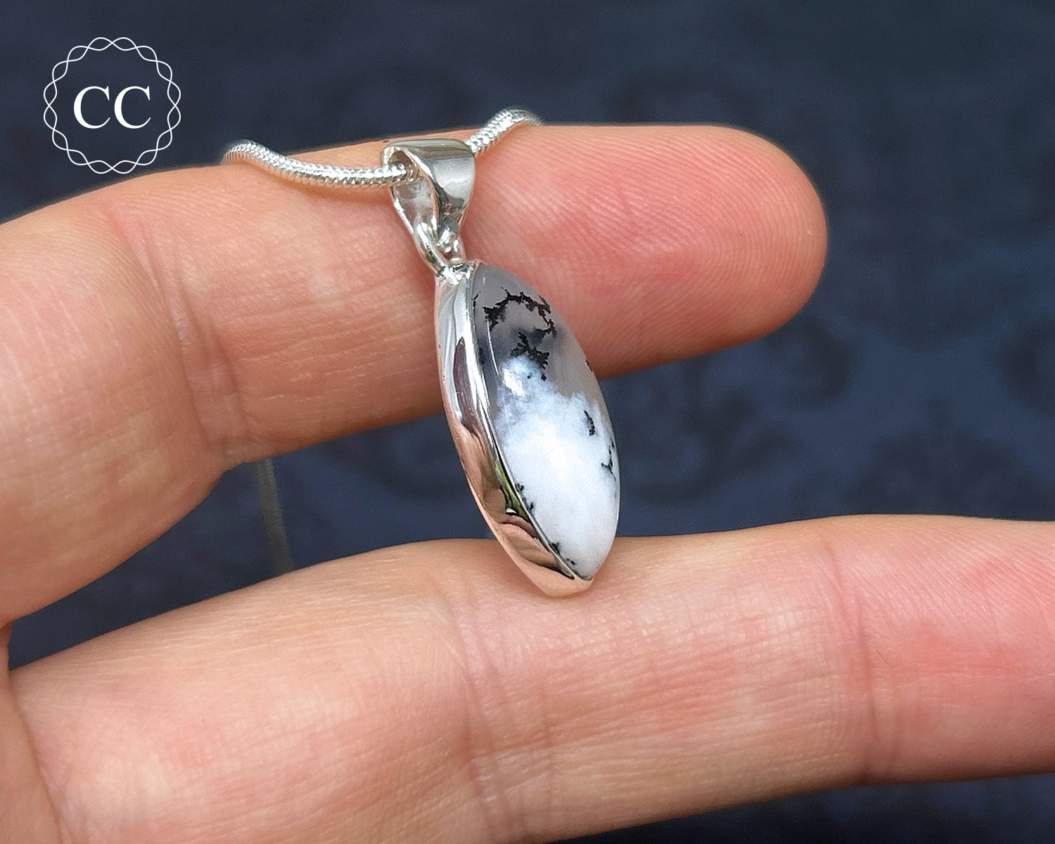 Merlinite | Dendritic Opal Silver Necklace #4