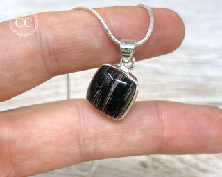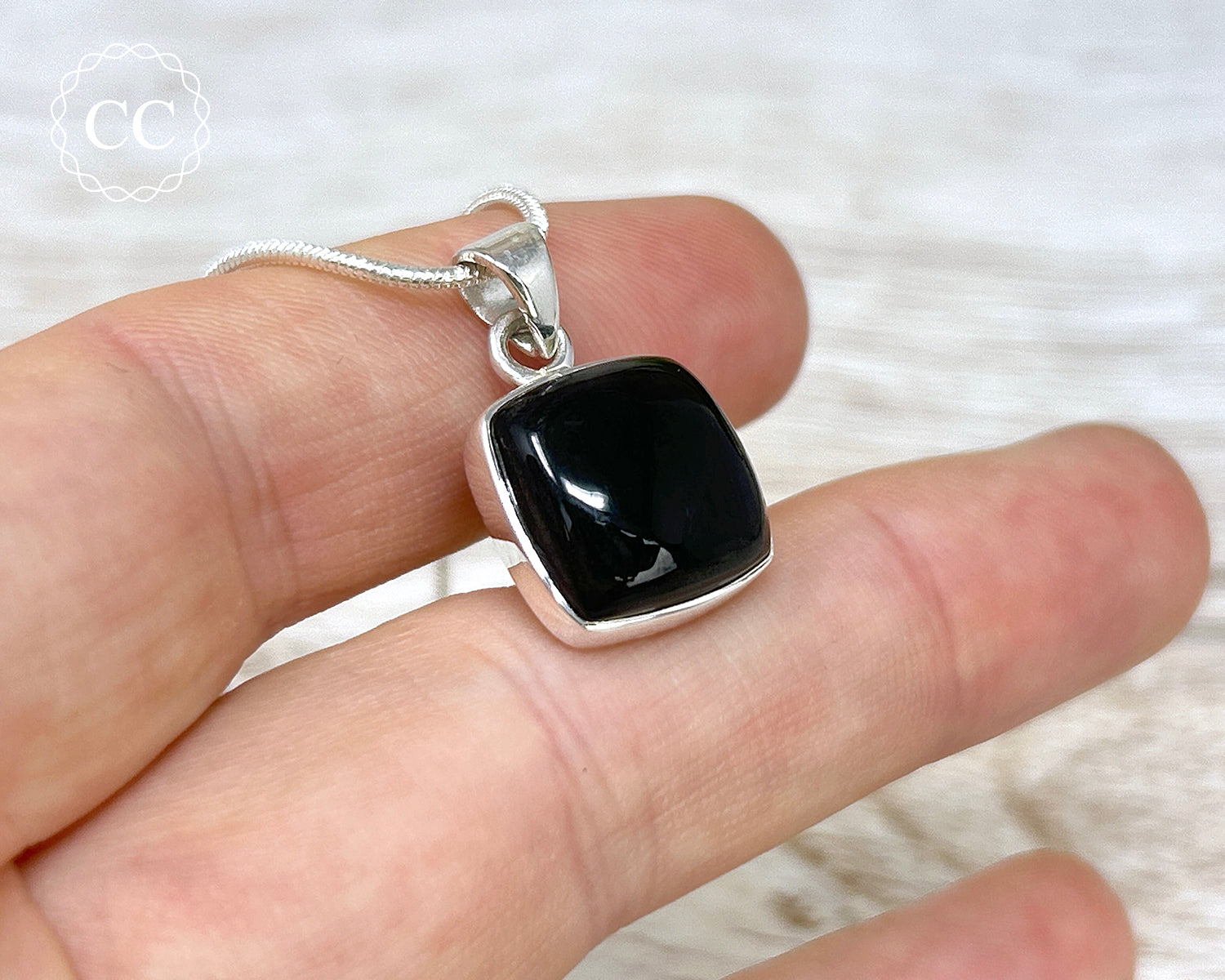 Gorgeous hand selected Midnight Lace Obsidian pendant set in 925 Sterling Silver. Comes with an 18 inch snake chain and a CC gift box with a polishing cloth. Dimensions are the size of the pendant, and do not include the bail.