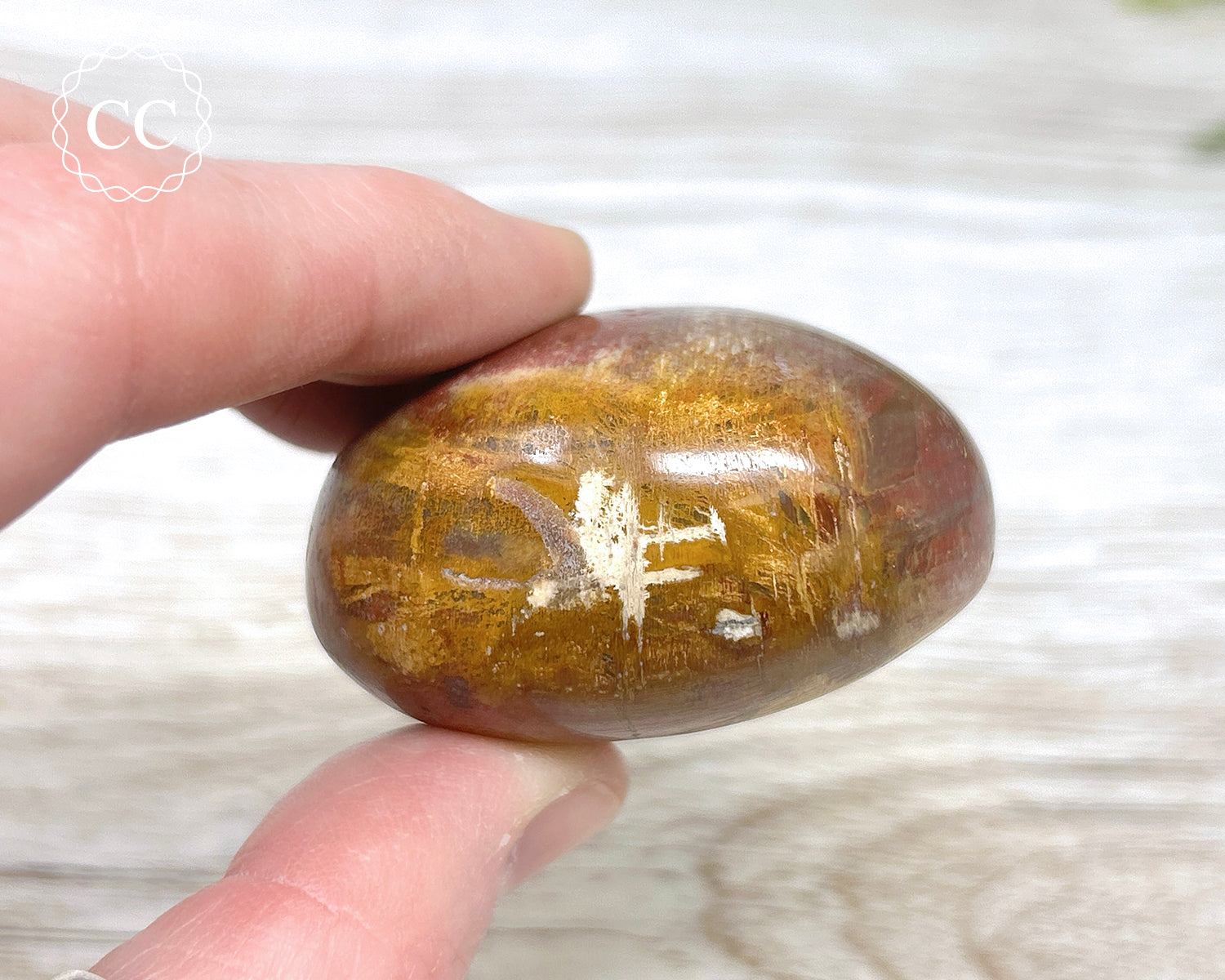 Beautiful Petrified Wood palmstone with lovely patterning. You will receive the exact Petrified Wood palmstone in the pictures.