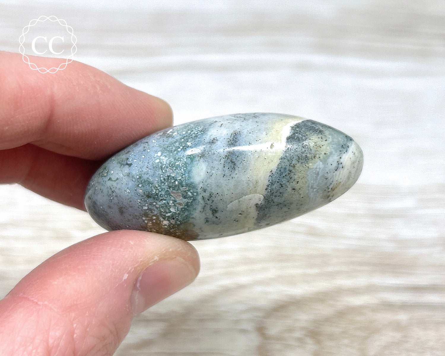 Beautiful chunky Sea Jasper palm stone from Madagascar with interesting colours and patterns. You will receive the exact Sea Jasper crystal shown in the photographs.