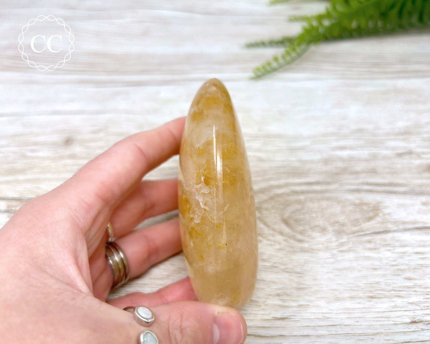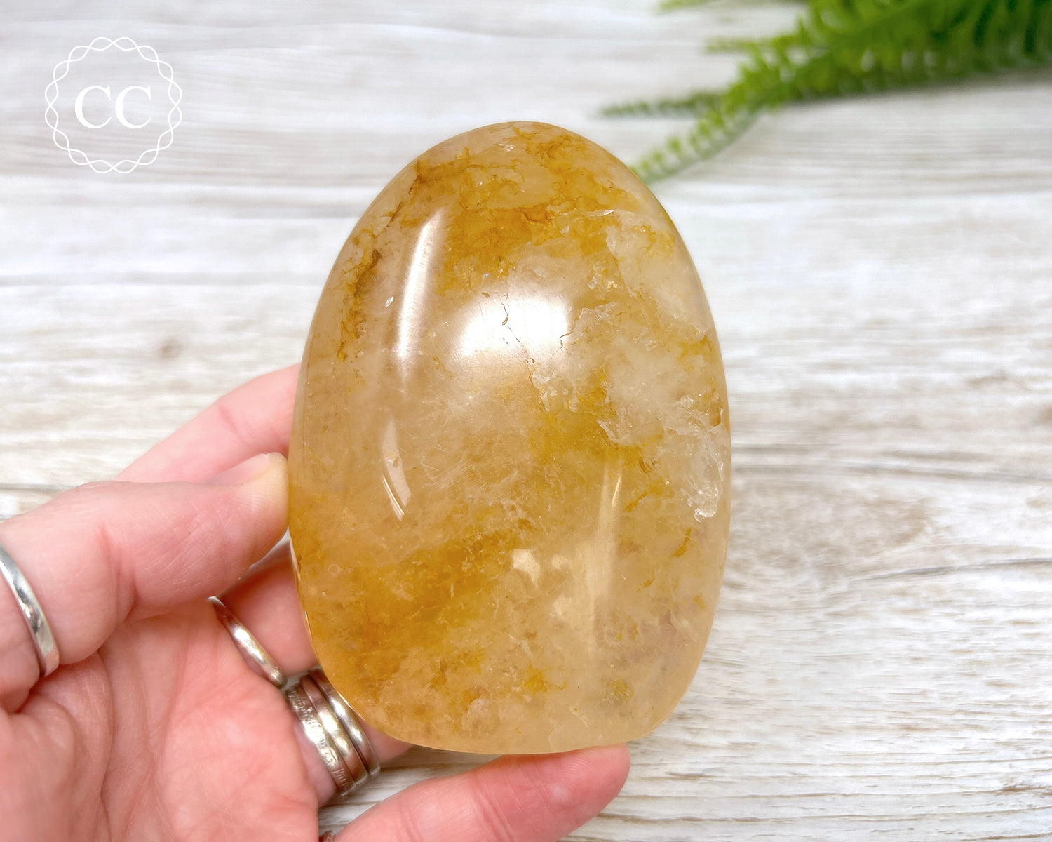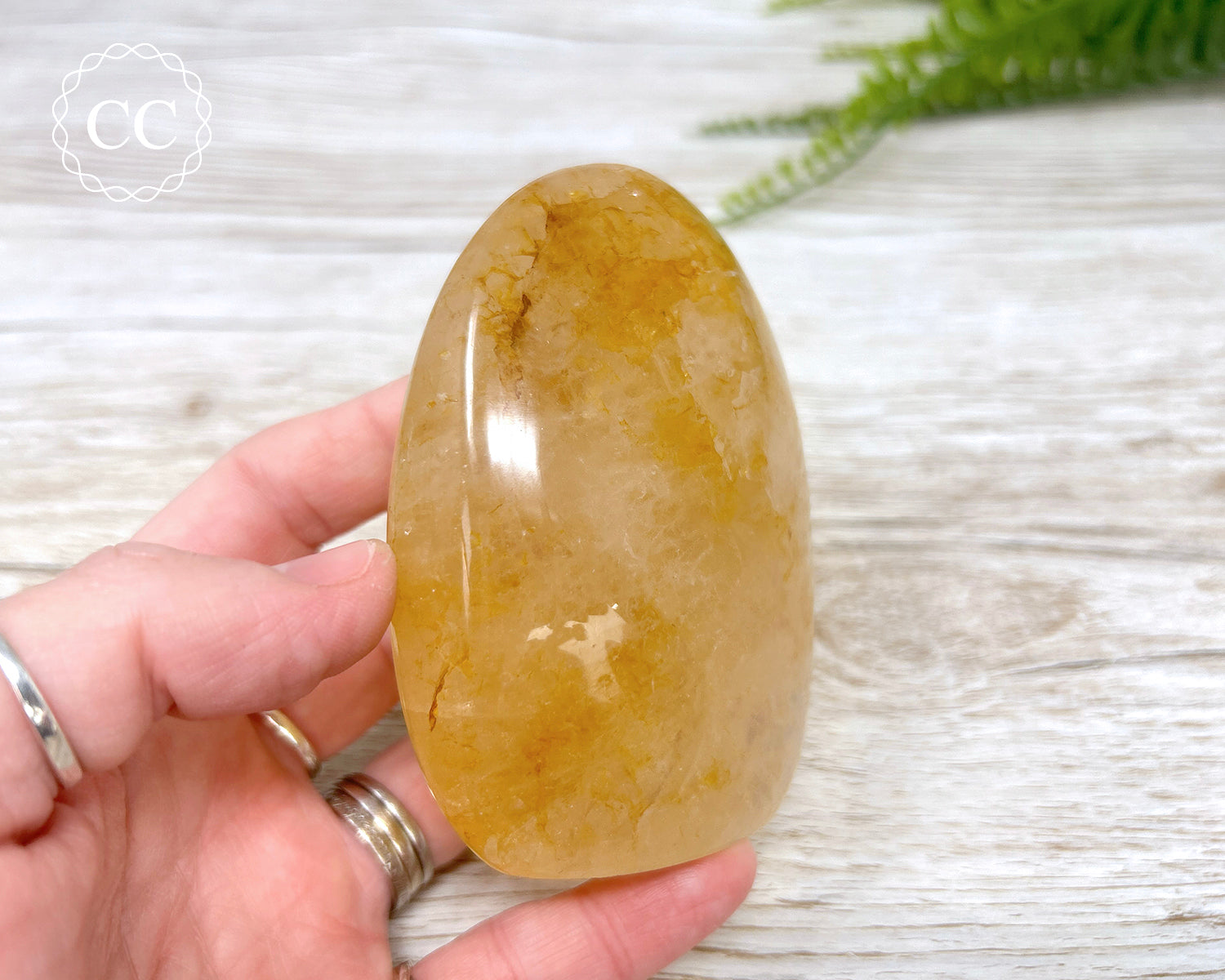 This lovely Golden Healer Quartz cut base freeform from Madagascar has gorgeous veins and patterns deep inside the crystal. You will receive the exact Golden Healer crystal pictured.