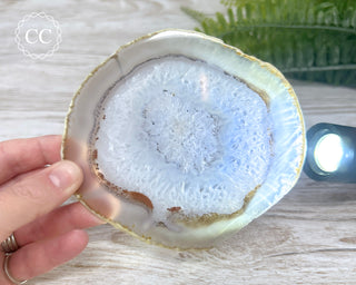 Lovely Agate slice from Brazil. Many Agate geodes and slices you see are dyed bright, unnatural shades, but this beautiful crystal is completely natural. You will receive the exact item shown in the photos.