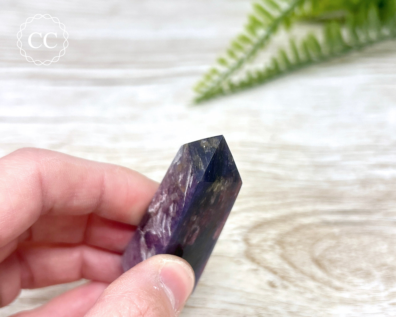 This stunning Gem Lepidolite and Pink Tourmaline tower is also known by the trade name Unicorn Stone. Unlike most Unicorn Stone, the Lepidolite that makes up the majority of this tower is classed as Gem Lepidolite, which means that the layers of the Lepidolite Mica are stacked together tightly, giving a very shiny reflection on two sides, and you can see the stacked very thin layers on the opposite two sides (if you backlight these sides then you will see a lovely soft purple glow). As with most Gem Lepidolite, these towers have been stabilised to minimise peeling of the layers, which is natural for mica sheets. You will receive the exact crystal in the photos.