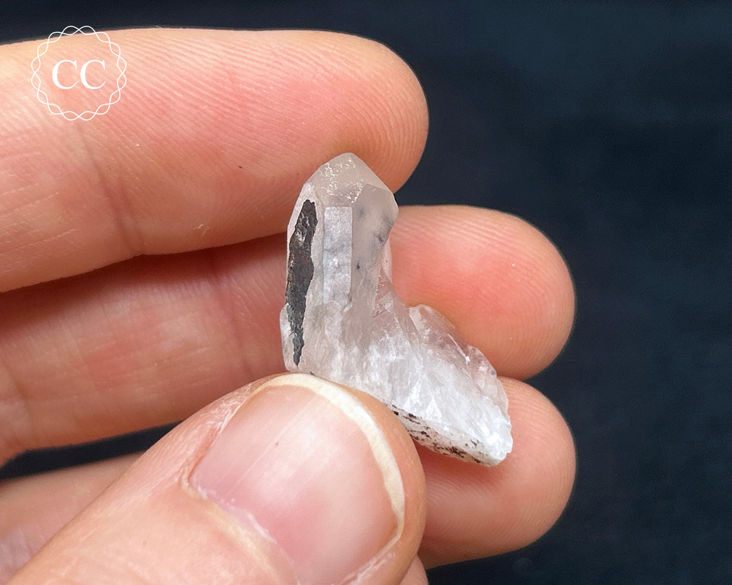 Hollandite is an oxide that grows as a rare black star shaped inclusion inside of Clear Quartz crystals.