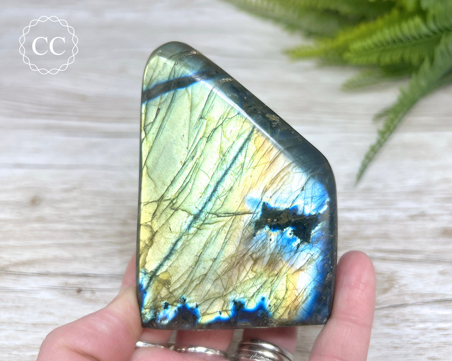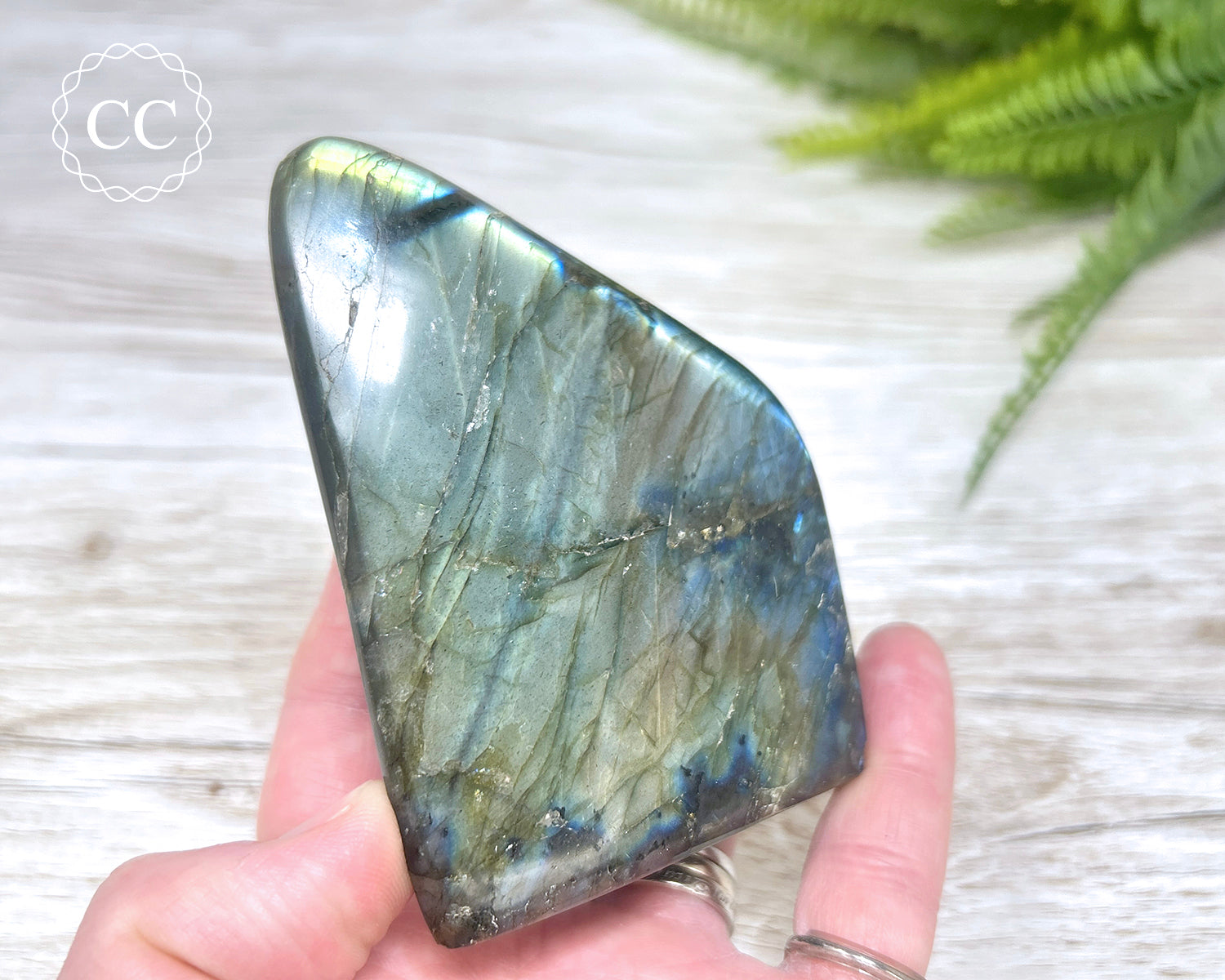 Gorgeous hand selected Labradorite cut base freeform from Madagascar. You will receive the exact Labradorite crystal pictured.