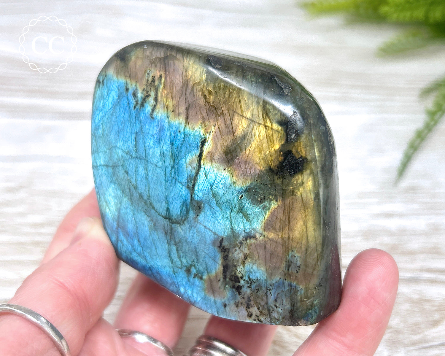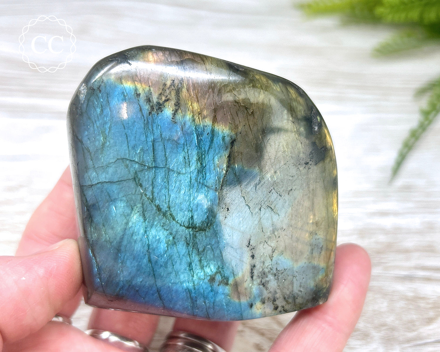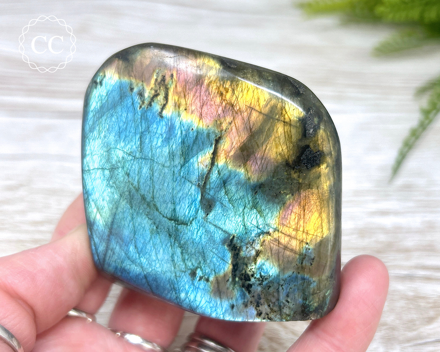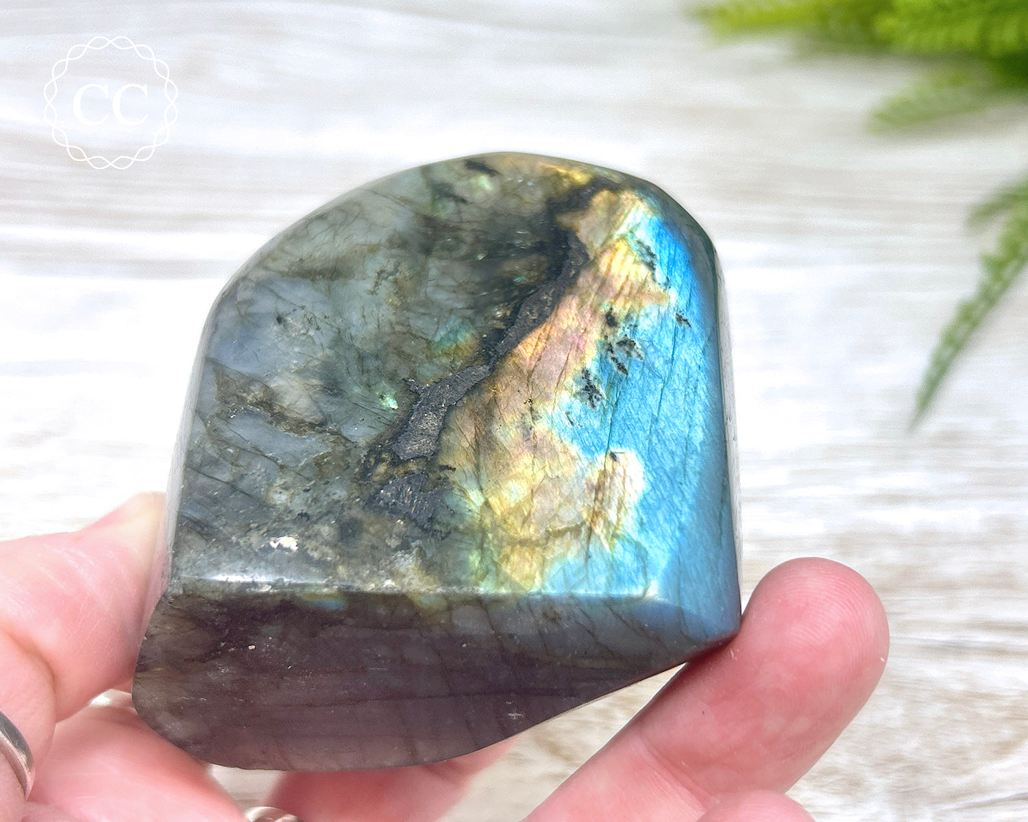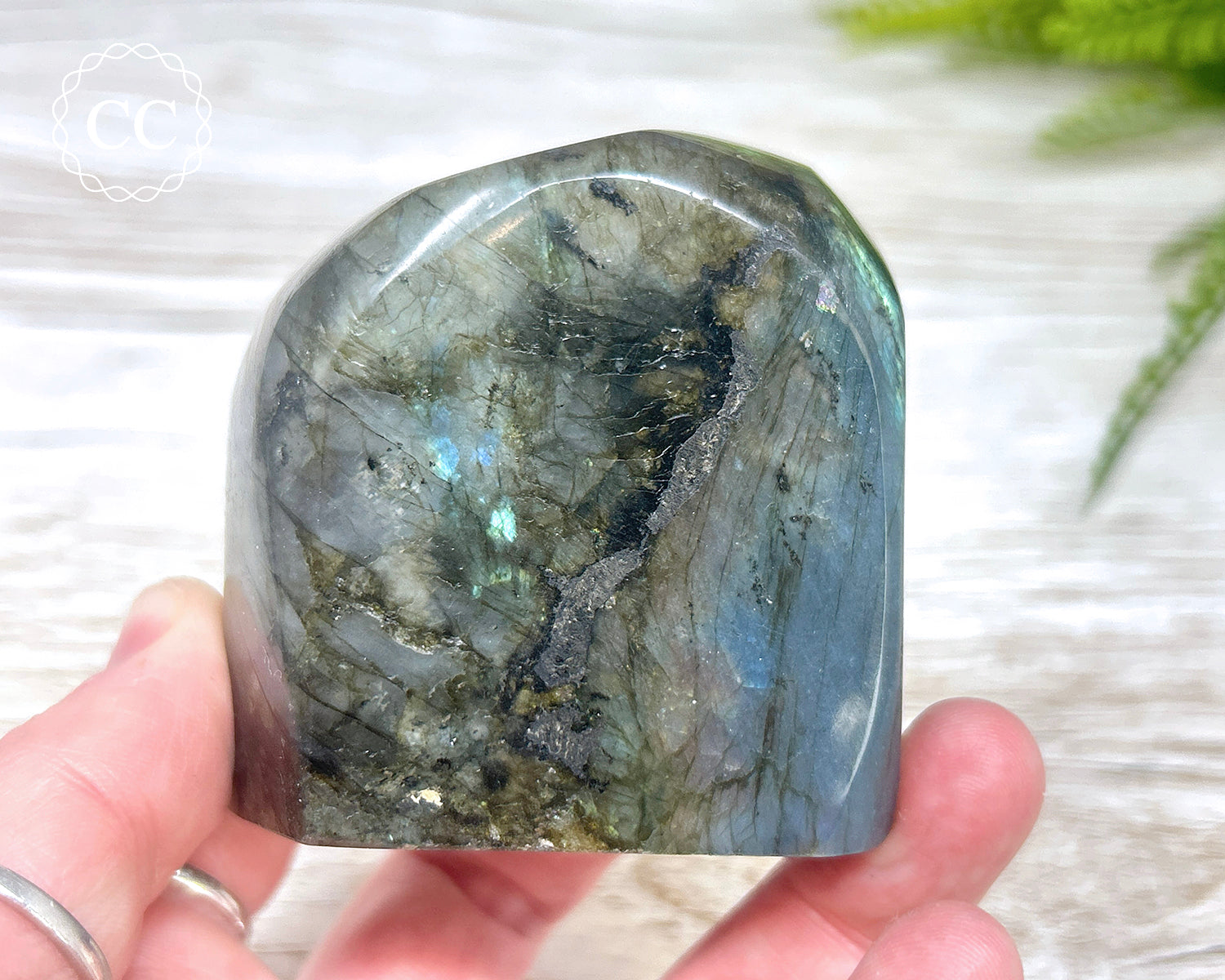 Gorgeous hand selected Labradorite cut base freeform from Madagascar. You will receive the exact Labradorite crystal pictured.