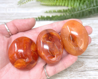 Beautiful chunky Carnelian palmstones from Madagascar. Each one is approx 44 - 55mm across. You will receive one palmstone, the photos show examples of the ones we have available.