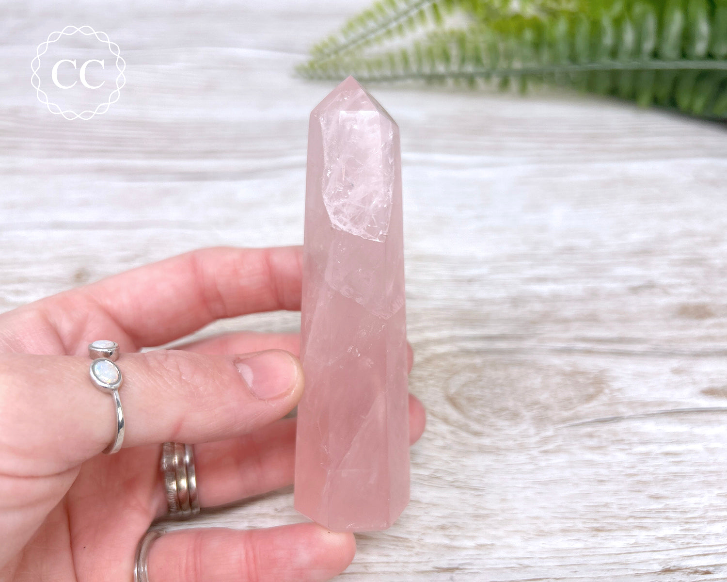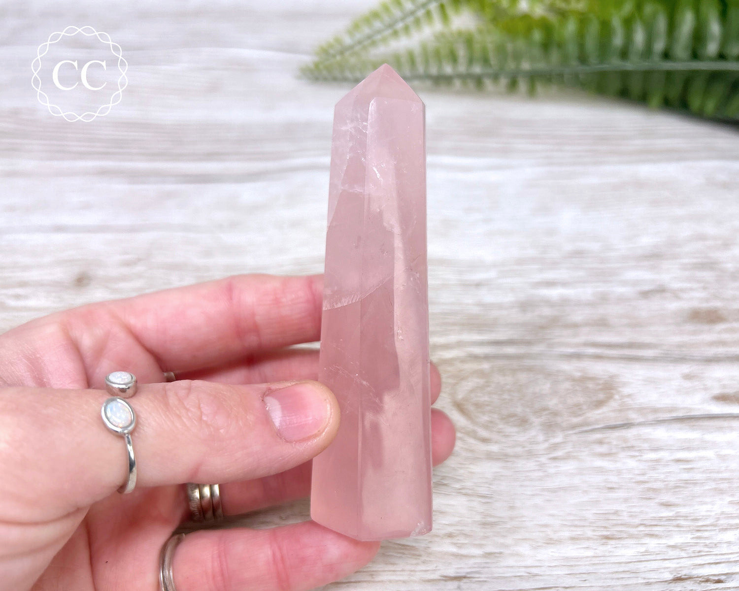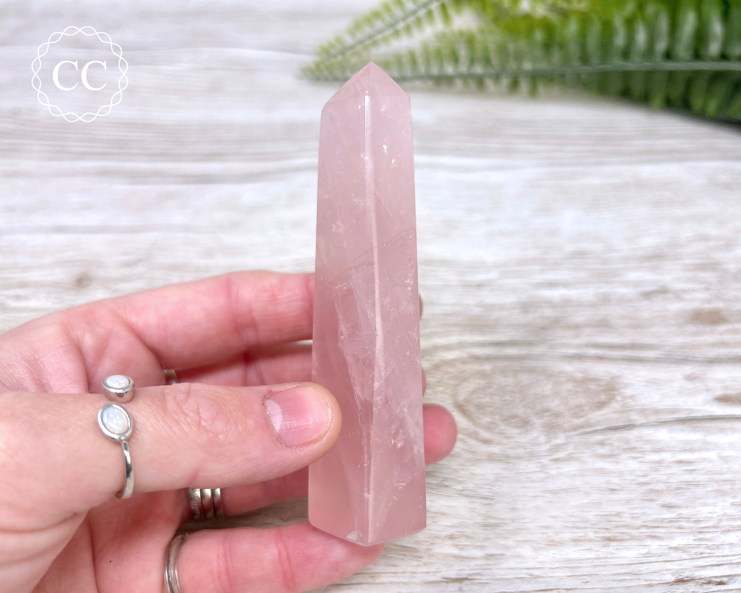 Hand selected Rose Quartz Tower with a beautiful soft pink colour from Madagascar. You will receive the exact Rose Quartz Crystal pictured.