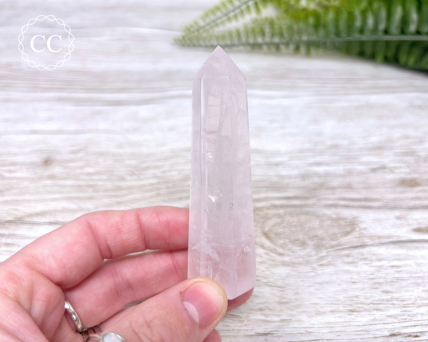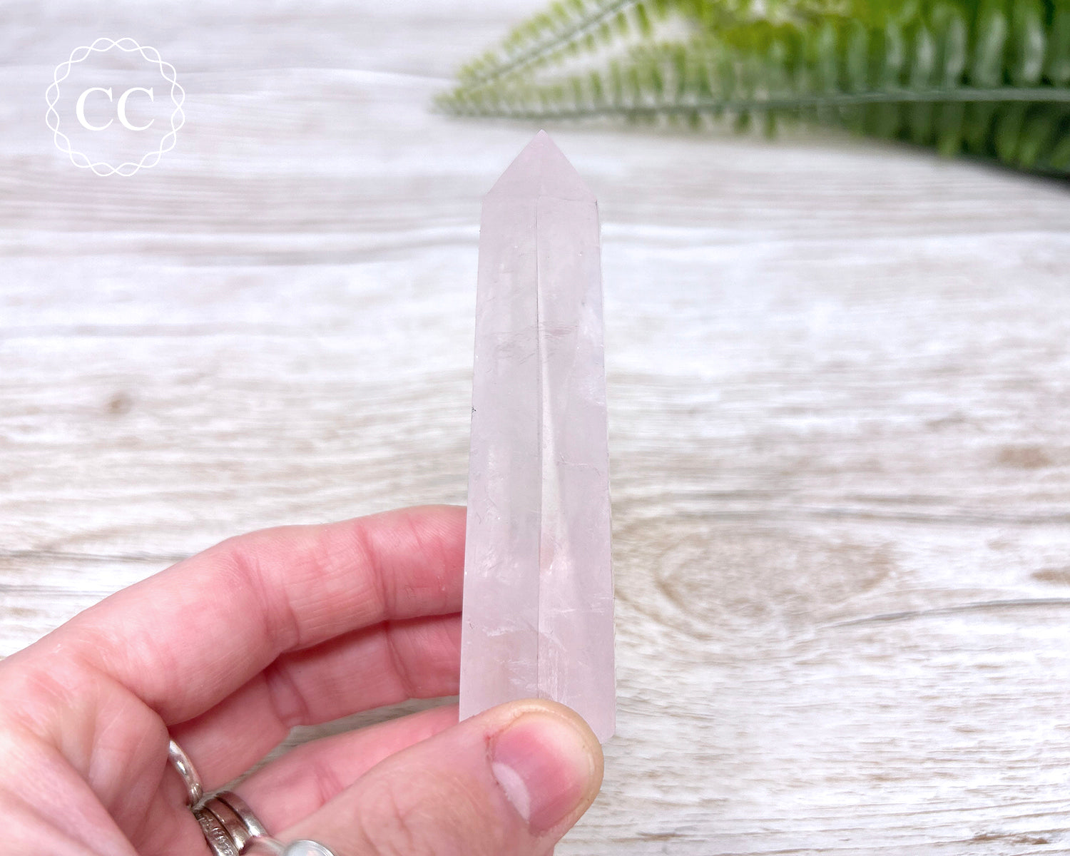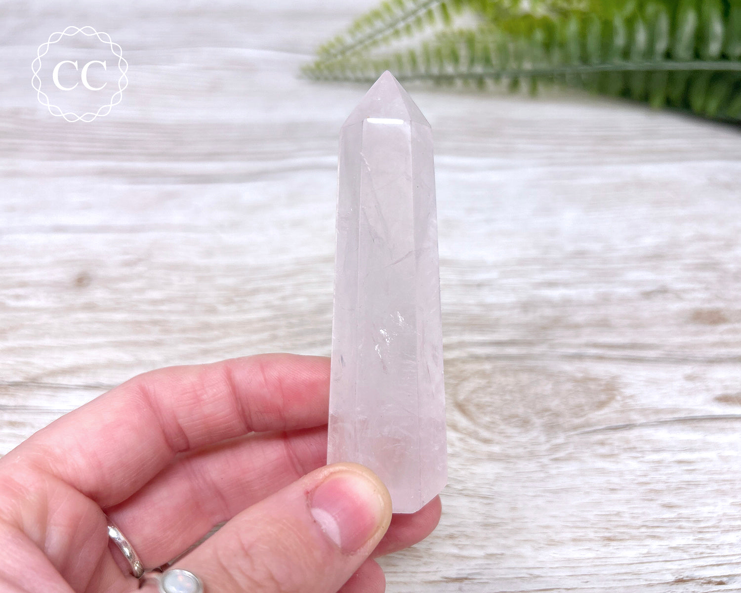 Hand selected Rose Quartz Tower with a beautiful soft pink colour from Madagascar. You will receive the exact Rose Quartz Crystal pictured.
