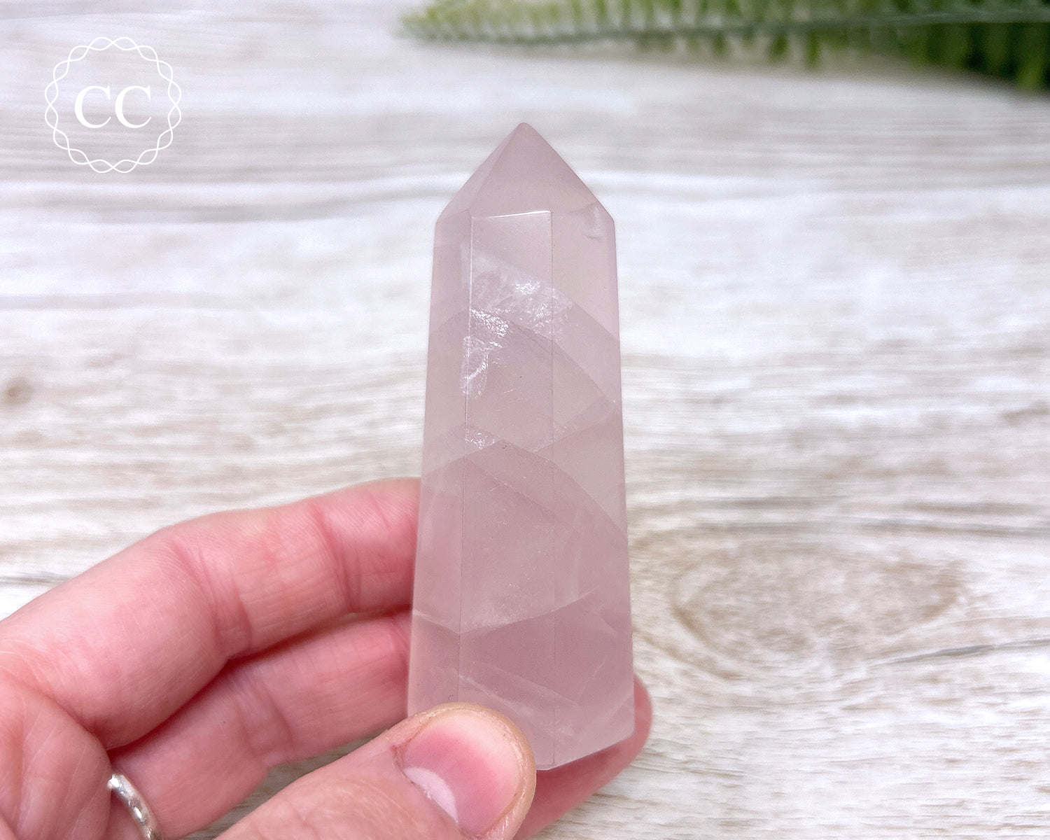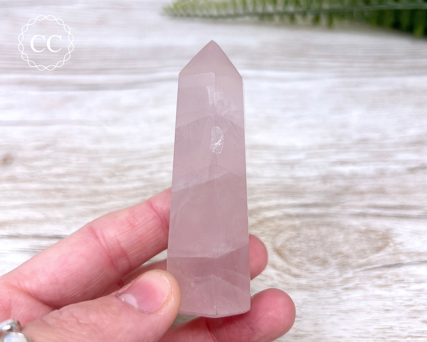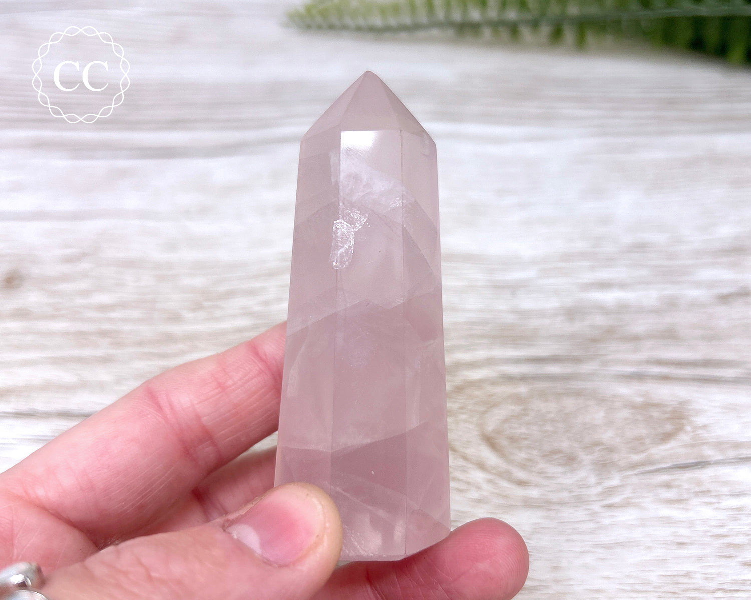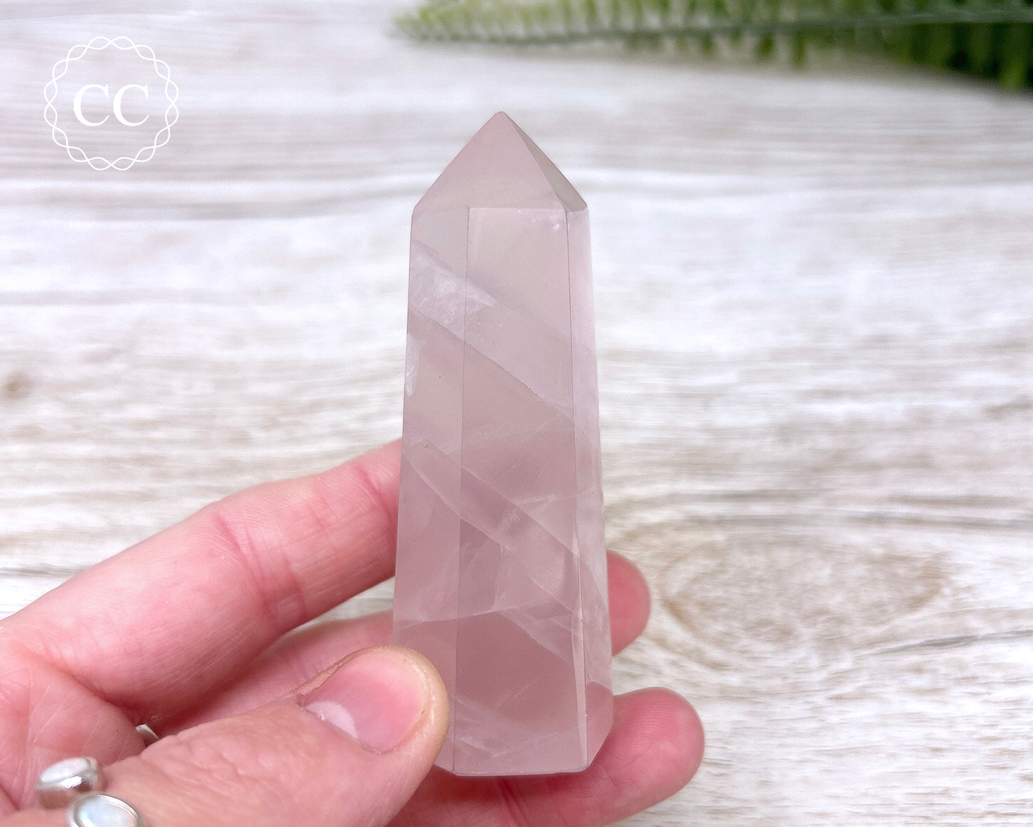 Hand selected Rose Quartz Tower with a beautiful soft pink colour from Madagascar. You will receive the exact Rose Quartz Crystal pictured.