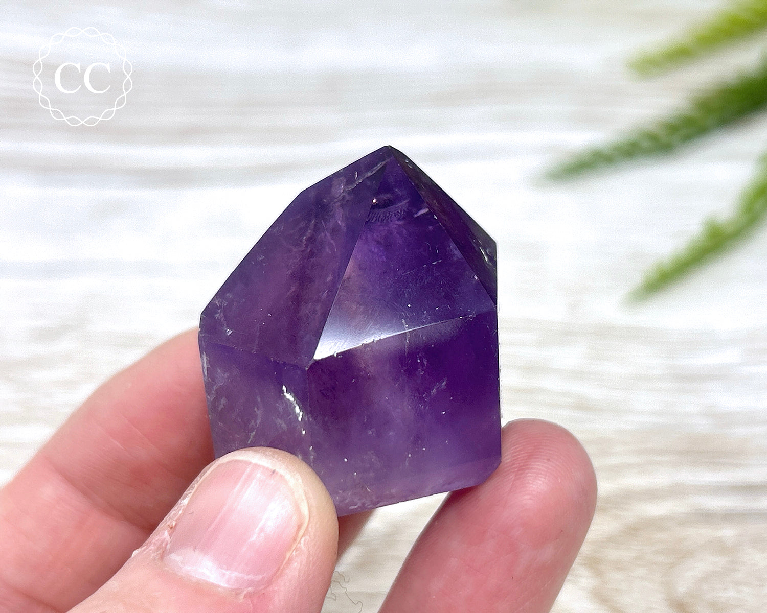 This Amethyst polished tower is from Bahia in Brazil, and is a beautiful deep shade of purple, being cut and polished from the top sections of the famous Amethyst 'roots' from Bahia. You will receive the exact Amethyst crystal in the pictures.