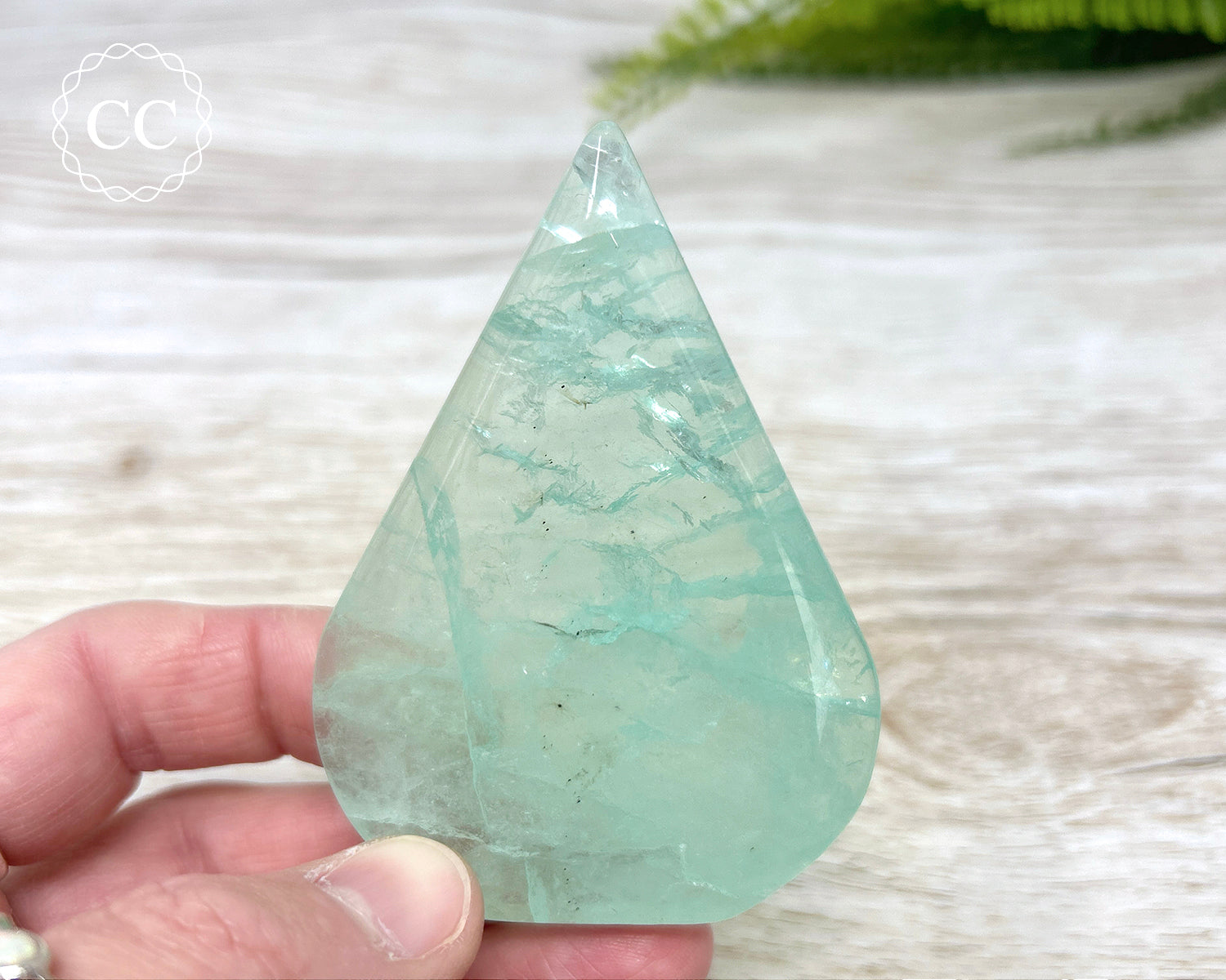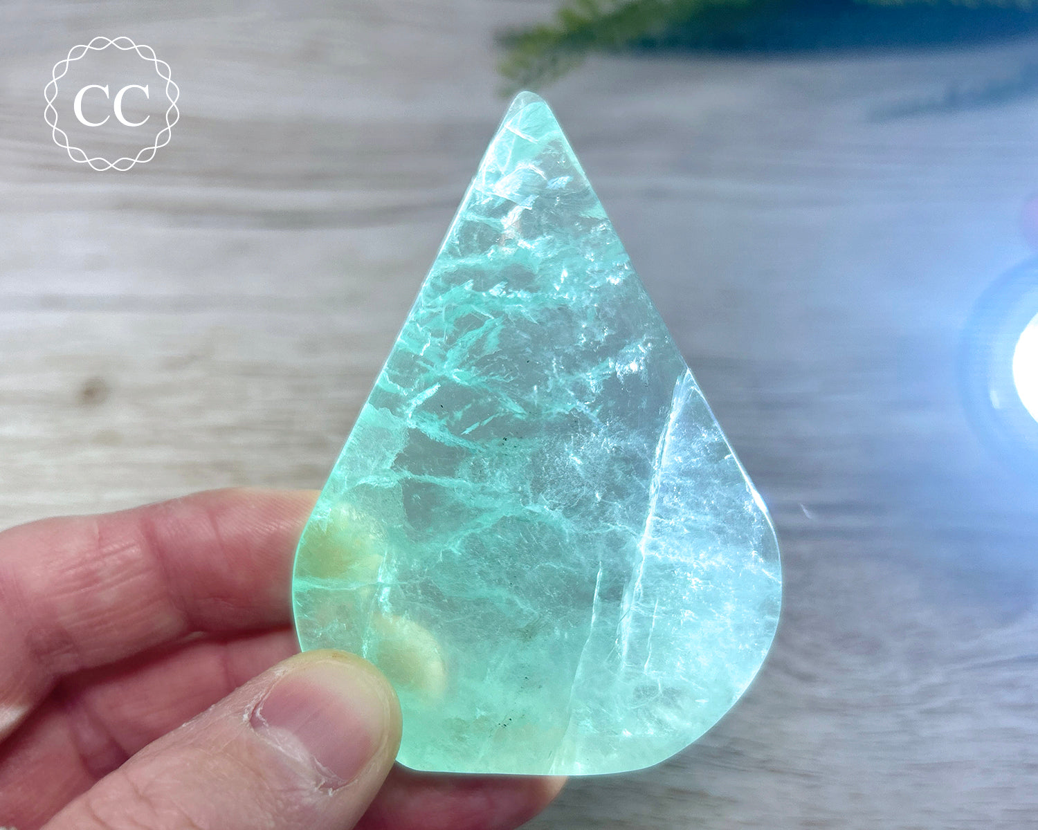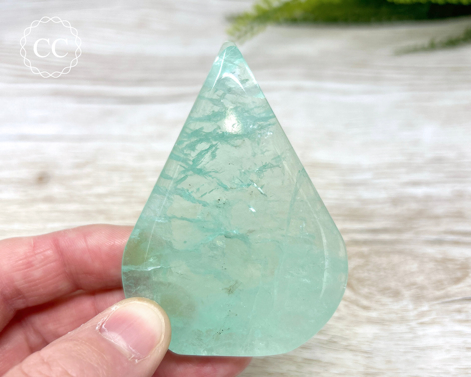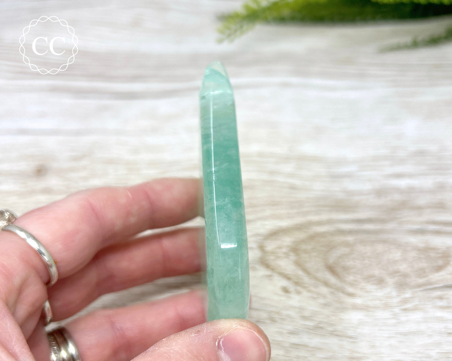 Gorgeous minty green Fluorite cut base freeforms with a lovely translucency. You will receive the exact Fluorite crystal pictured.