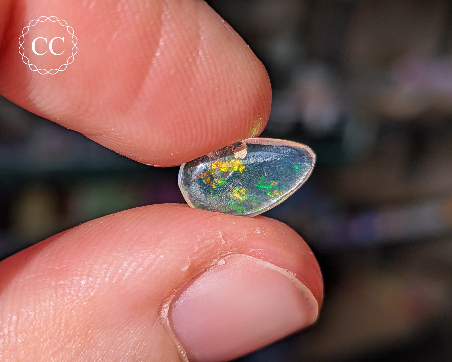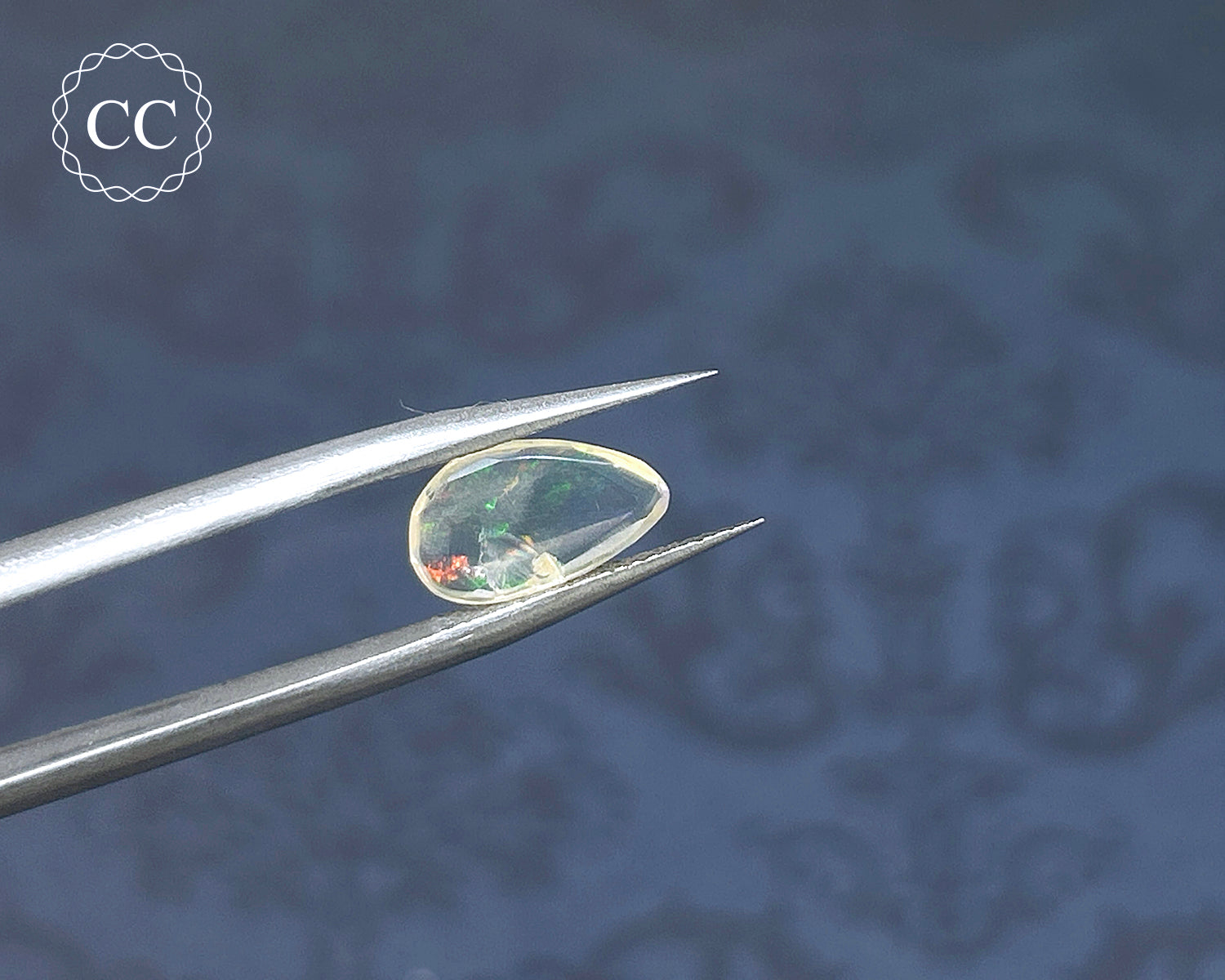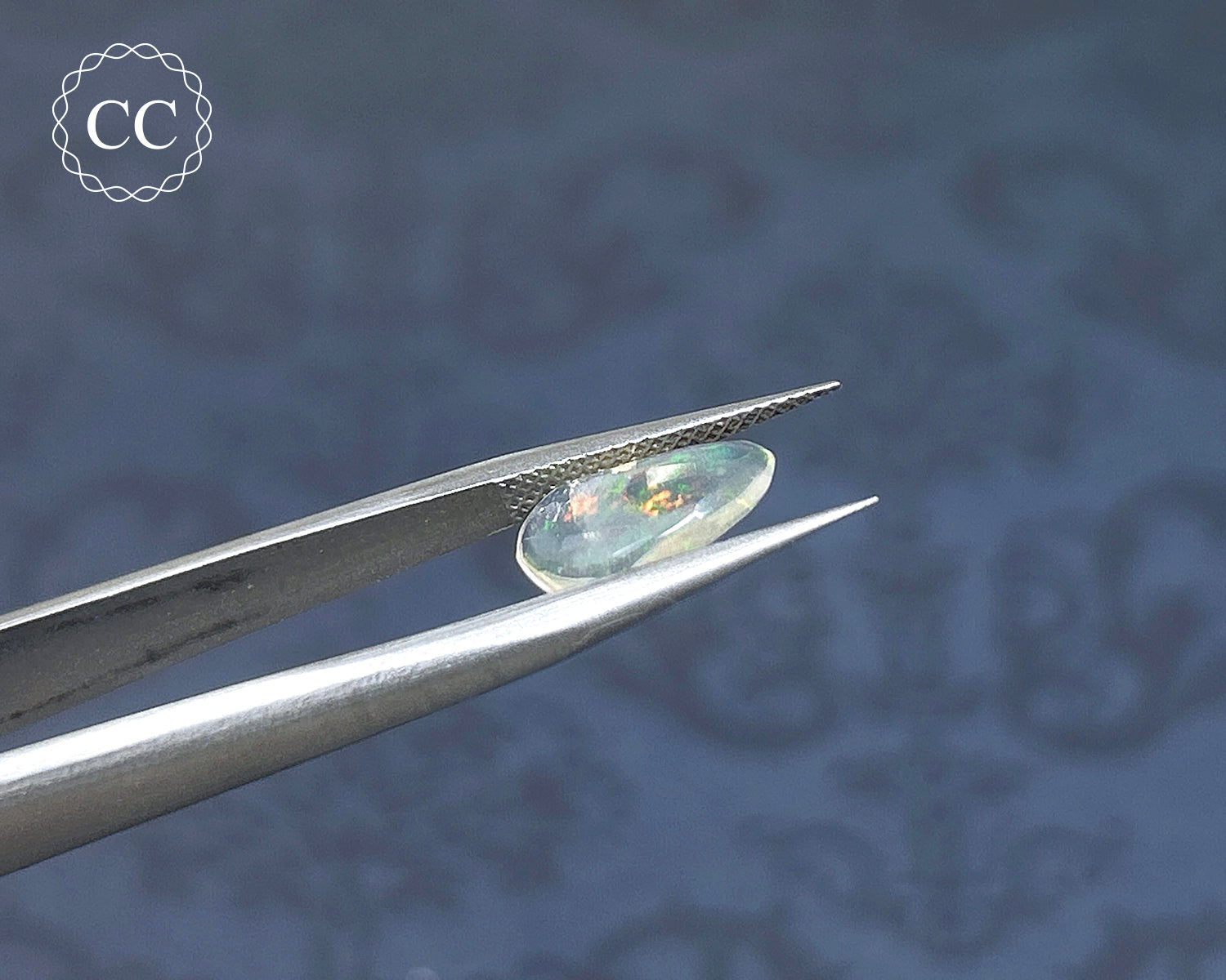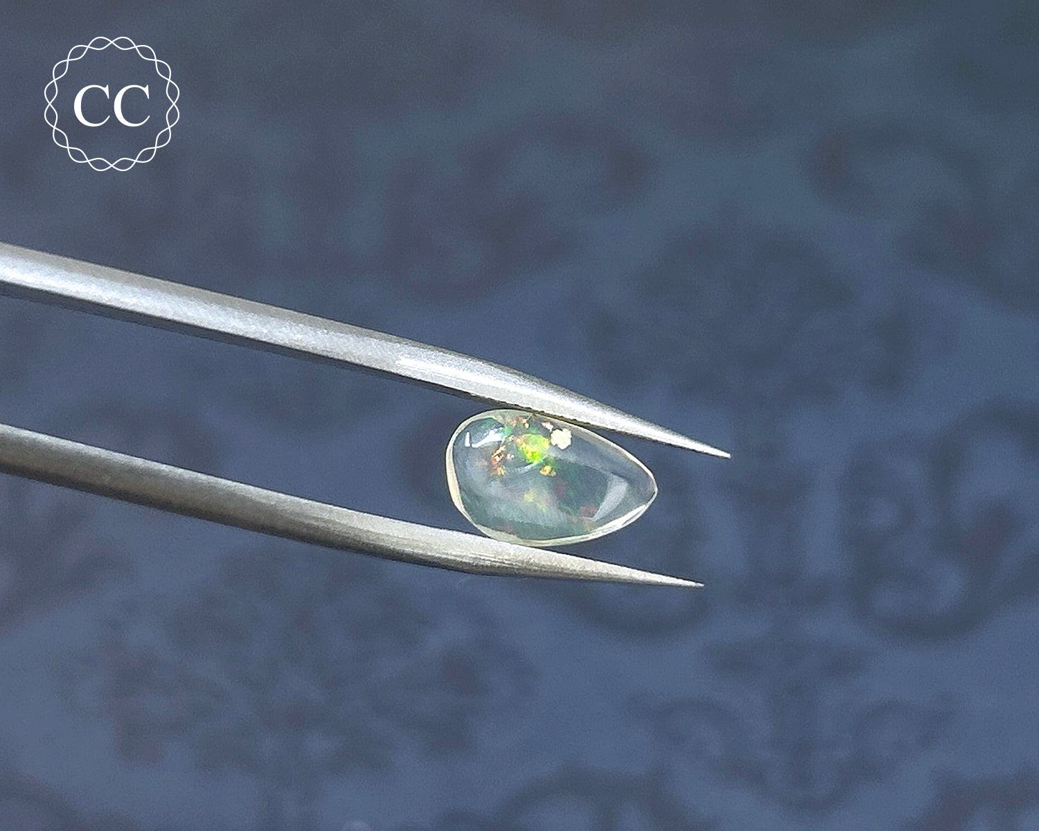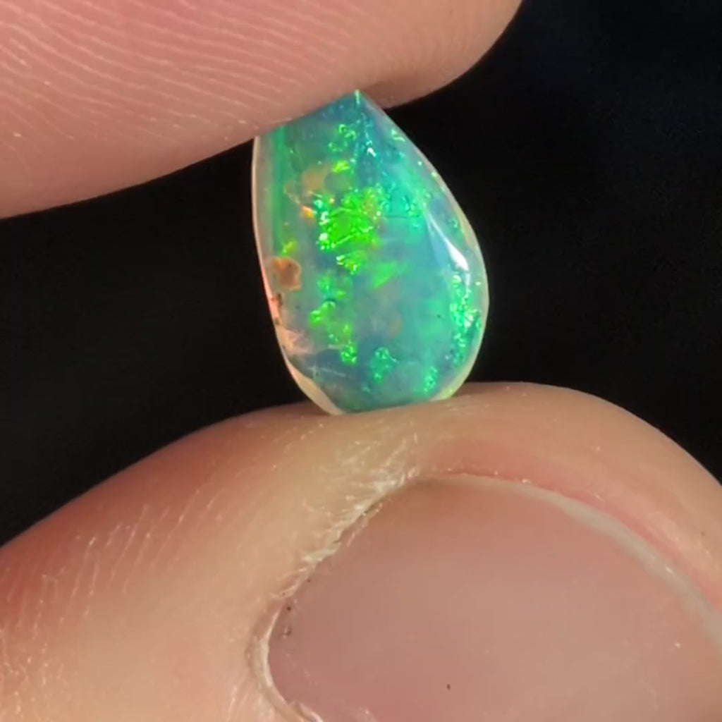 This Ethiopian Opal cab has been hand picked for it's colour. Please bear in mind that Opals are one of the most difficult crystals to photograph, so we have done these in both a lightbox, natural lighting and then a video in direct sunligjt to show them off to their full potential. You will receive the exact Opal crystal pictured.