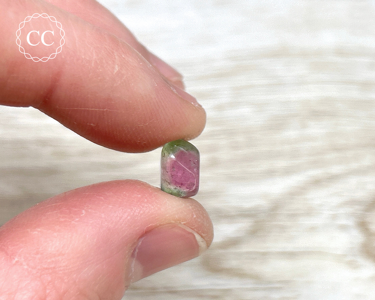 Tourmaline comes in many colours, the pink variety is also known as Rubellite and the green as Verdite. Watermelon Tourmaline is a combination of pink (Rubellite) and green (Verdite), where the outer crystal is green and the inner is pink. High quality Watermelon Tourmaline is incredibly desirable, and is often sold in very thin slices to best showcase the crystal colours.